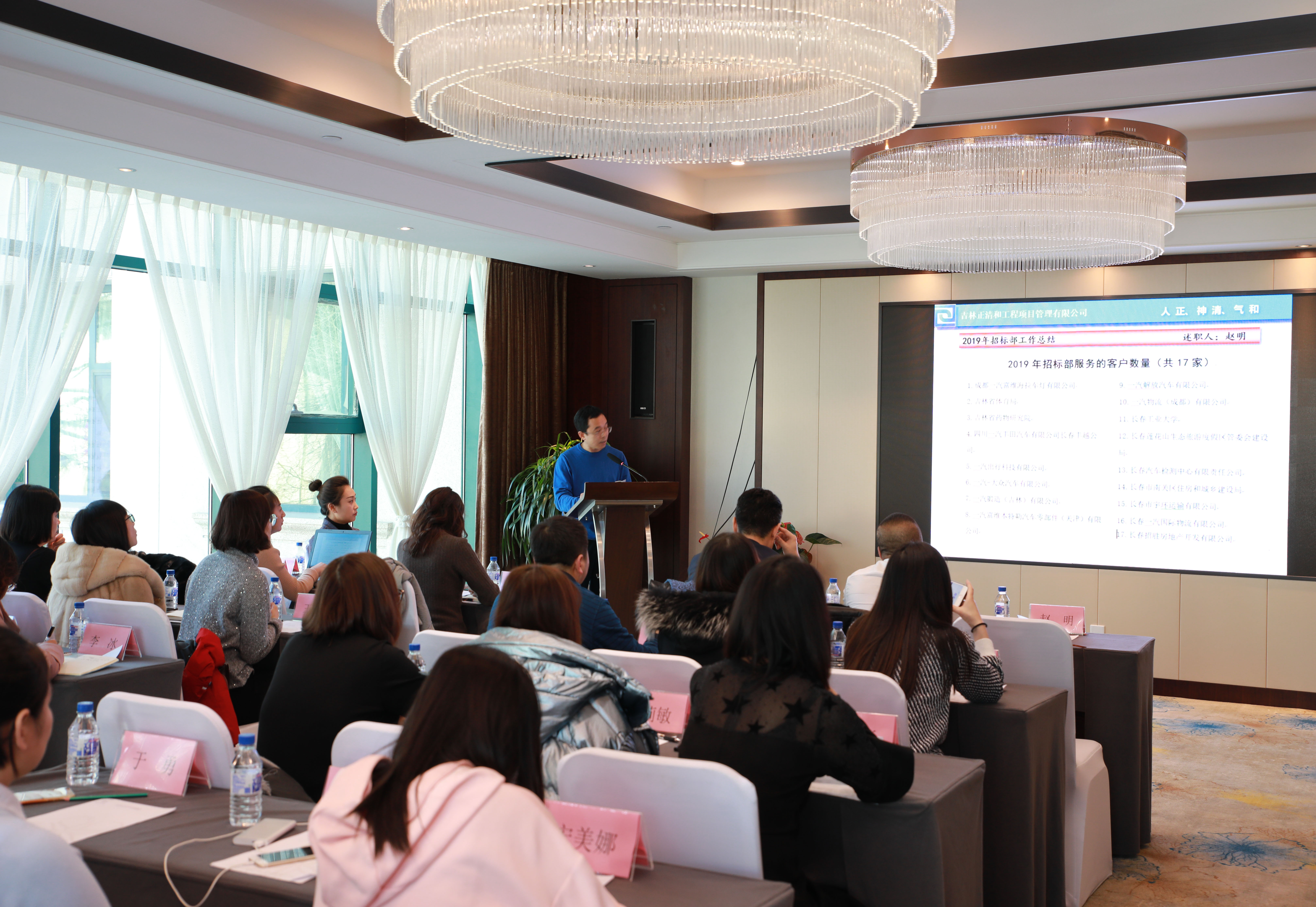 2019年12月21日,吉林正清和工程項目管理有限公司2019年度工作總結暨新春酒會在長春凱撒森林溫泉酒店隆重舉行。13:00公司全體員工在酒店會議室召開了2019年工作總結會議,會議分為三項內容,第一,部門負責人、專業(yè)負責人、項目負責人述職;第二,優(yōu)秀員工評選;第三,賈志權總經(jīng)理對2019年度工作進行總結,并從工作績效、職責分工、執(zhí)業(yè)指導和職業(yè)安全四個維度對2020年公司發(fā)展進行了全面規(guī)劃。會議結束后大家前往溫泉館泡溫泉,在繁忙的工作之余放松心情、緩解疲勞,以飽滿的精神迎接新的一年。