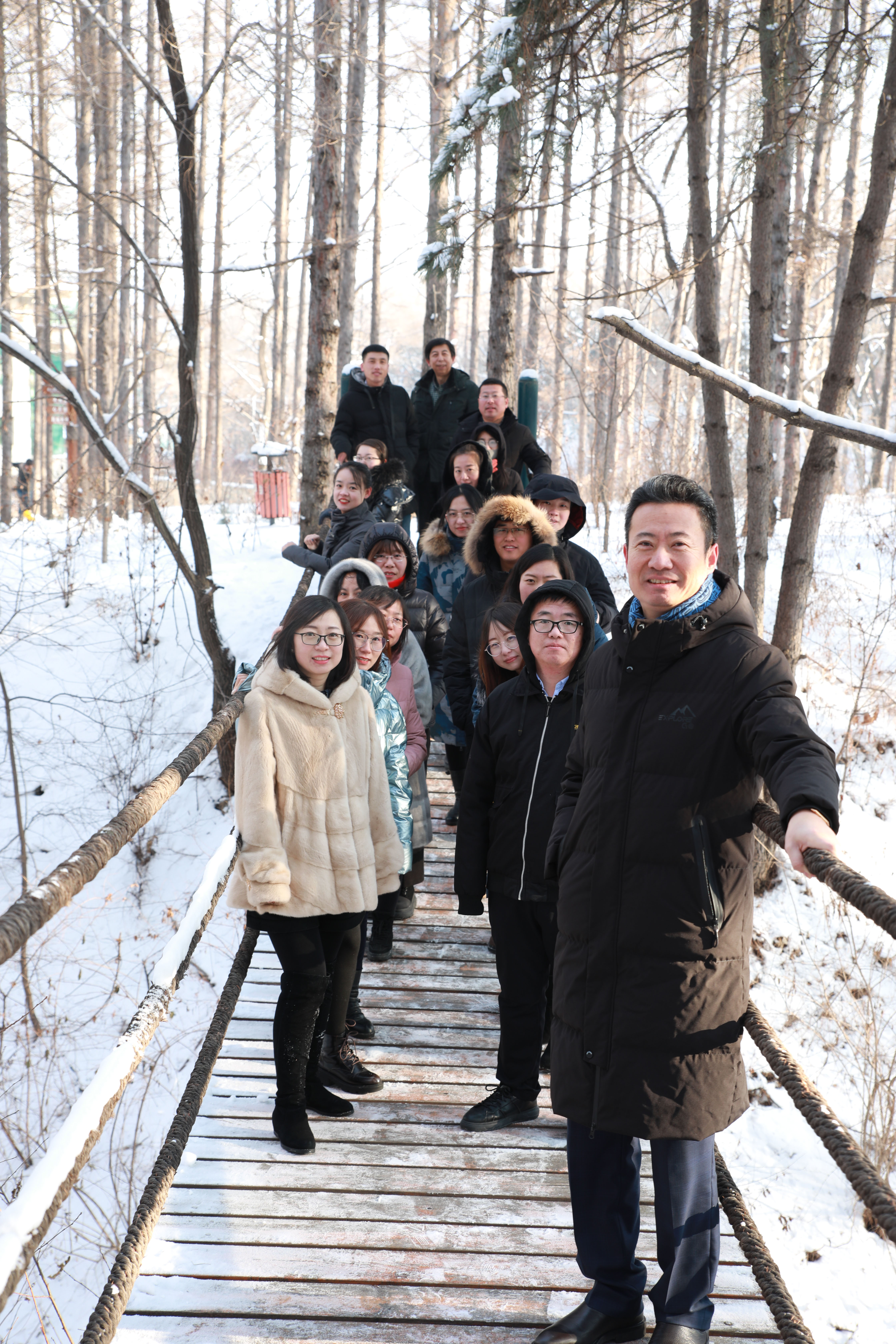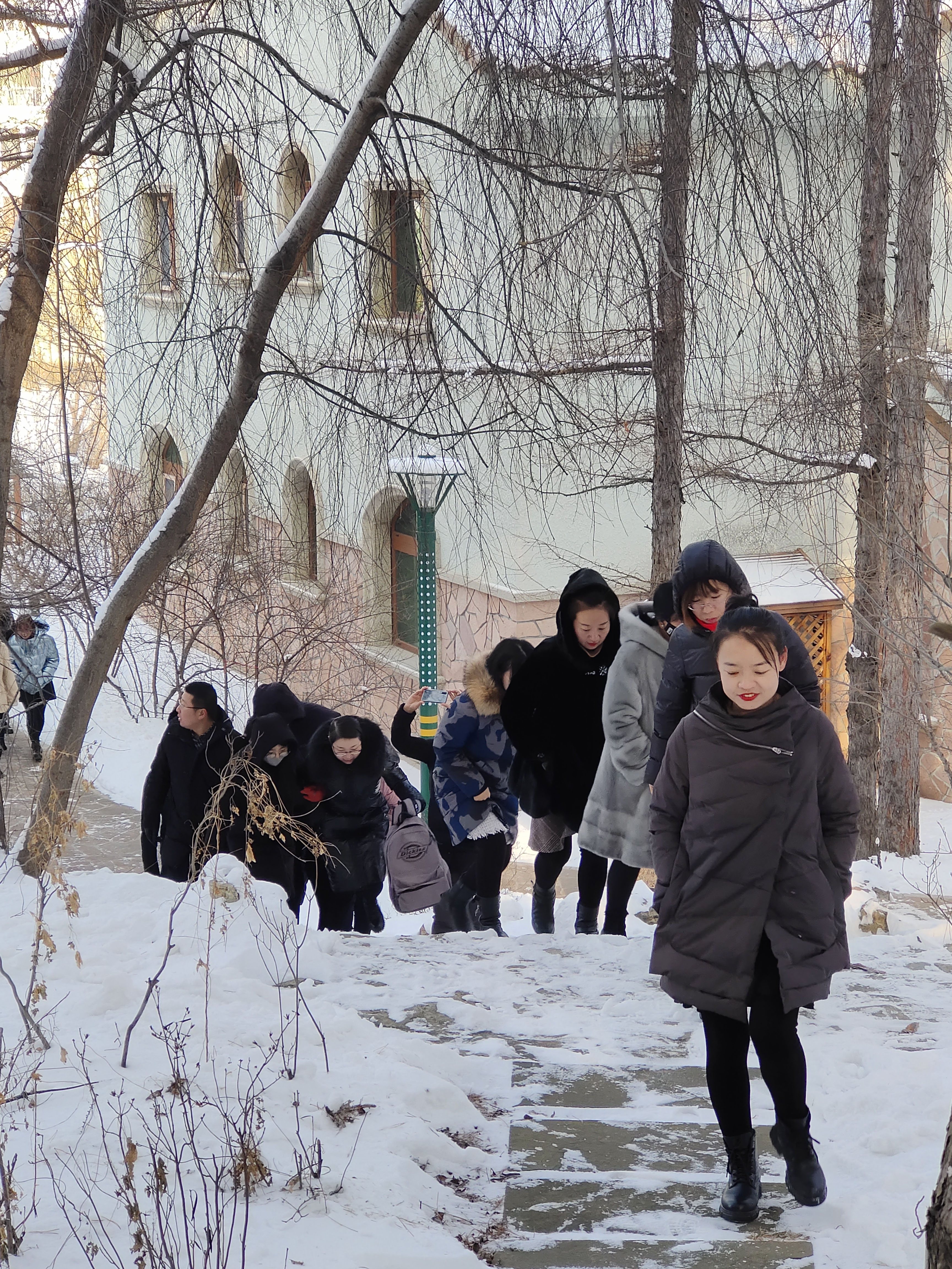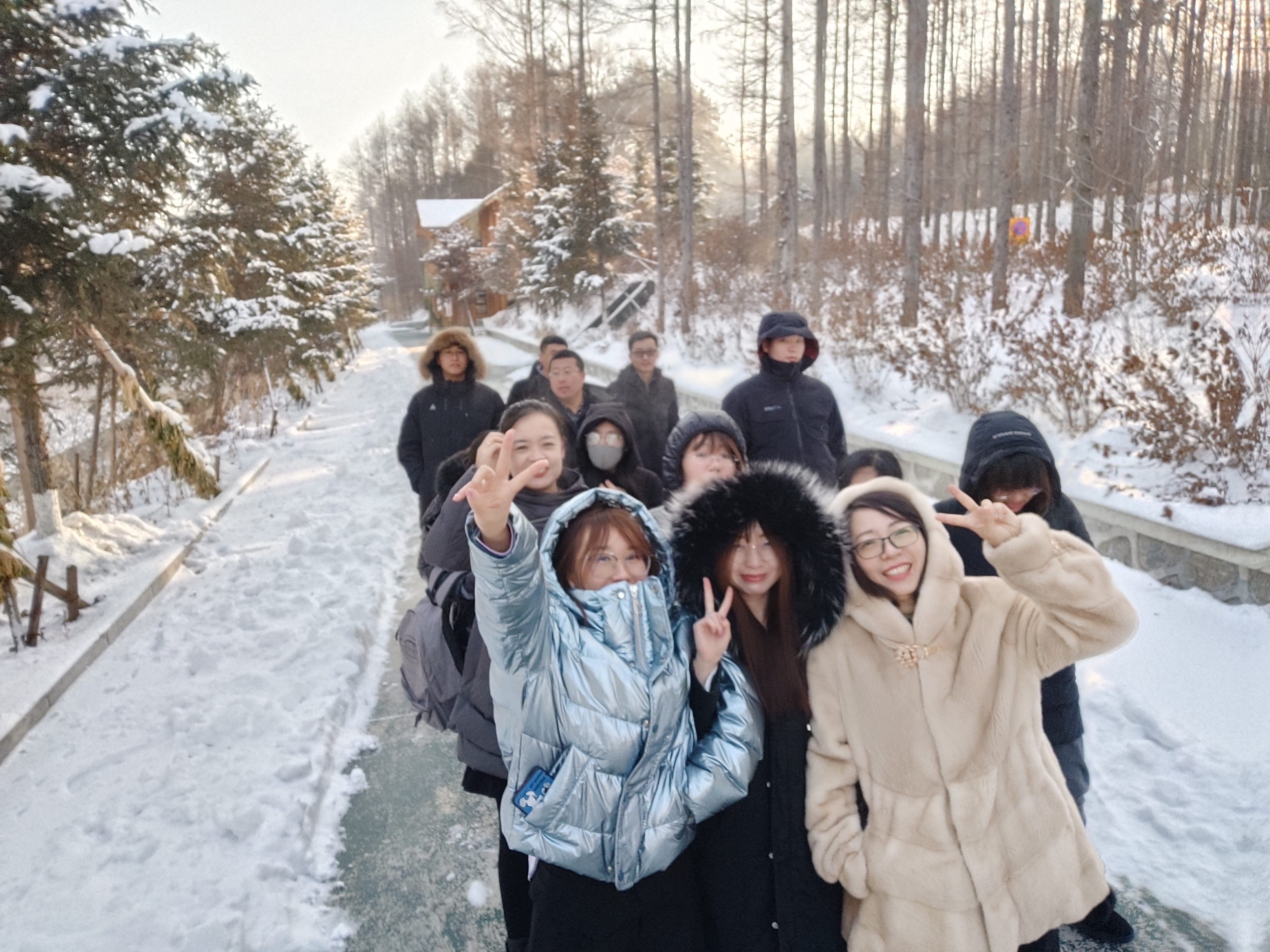 第二天清晨,大家共同漫步于酒店園區(qū),欣賞著冬日銀裝素裹的美景。天氣雖冷,卻擋不住我們熱情的步伐,就這樣一路向前,留下堅實的足跡。