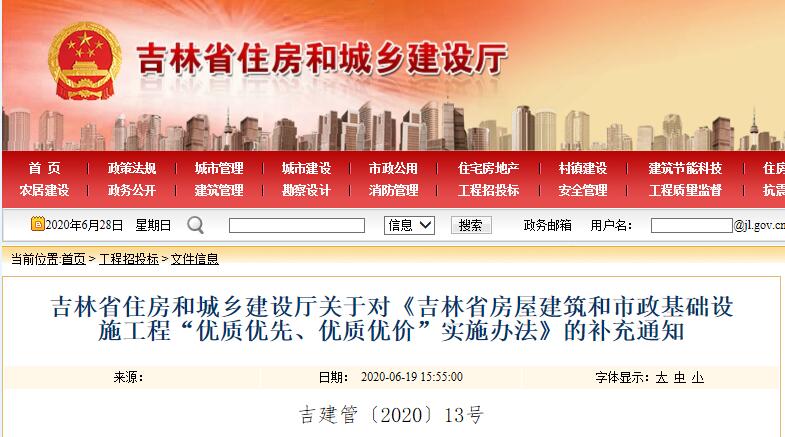 行業(yè)動態(tài)|關(guān)于對《吉林省房屋建筑和市政基礎(chǔ)設(shè)施工程“優(yōu)質(zhì)優(yōu)先、優(yōu)質(zhì)優(yōu)價”實(shí)施辦法》的補(bǔ)充通知