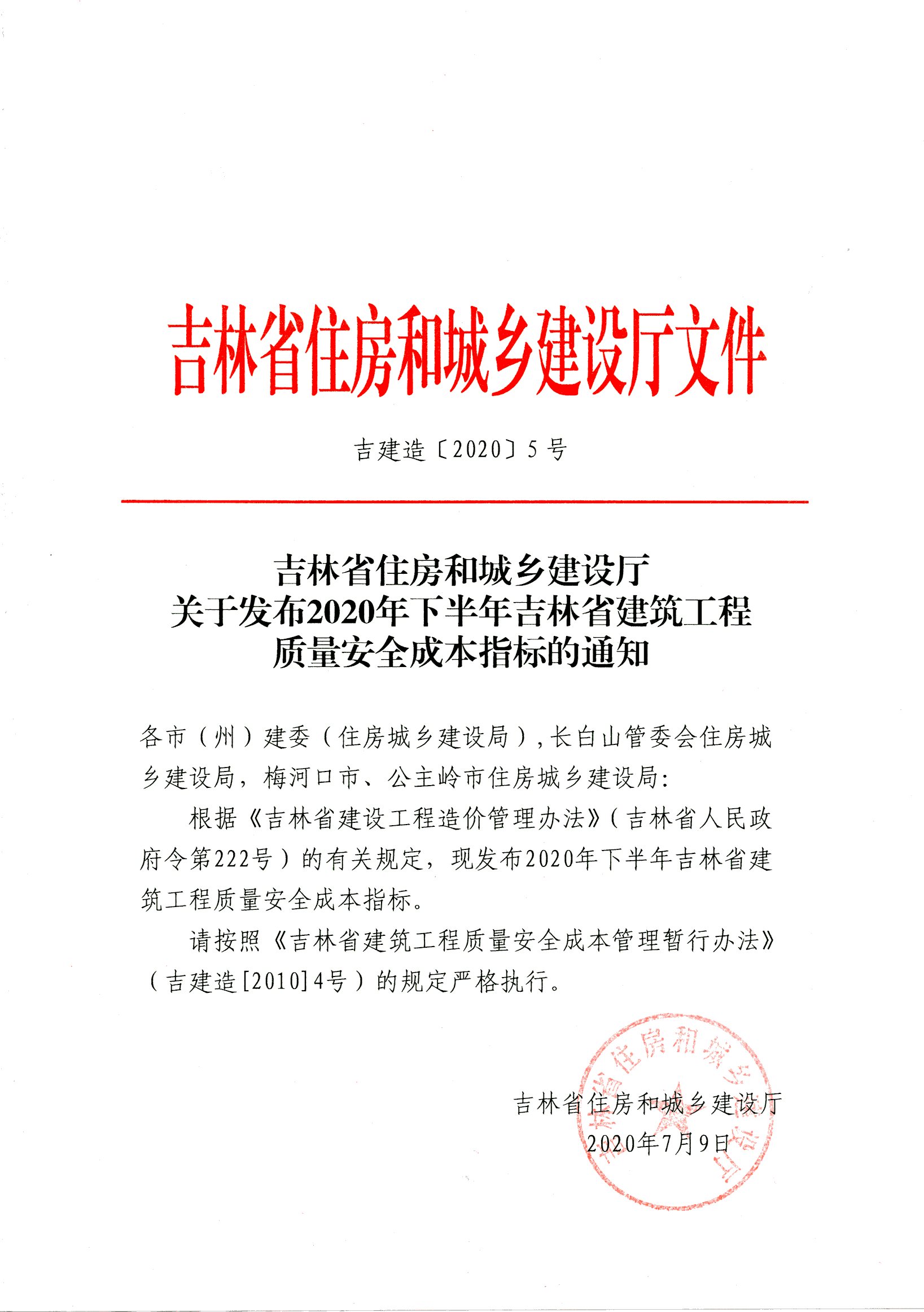 行業(yè)動態(tài)|省住建廳:關(guān)于發(fā)布2020年下半年吉林省建筑工程質(zhì)量安全成本指標(biāo)的通知 附件: 2020年下半年吉林省建筑工程質(zhì)量安全成本指標(biāo).doc 上一篇:行業(yè)動態(tài)|住房和城鄉(xiāng)建設(shè)部辦公廳關(guān)于印發(fā)工程造價改革工作方案的通知 下一篇:行業(yè)動態(tài)|住房和城鄉(xiāng)建設(shè)部辦公廳關(guān)于建設(shè)工程企業(yè)資質(zhì)延續(xù)有關(guān)事項(xiàng)的通知