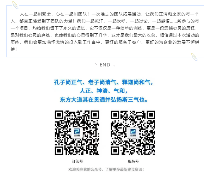 企業(yè)動態(tài)|“團結(jié)友愛,享受生活”—正清和2021年夏季拓展訓練紀實 上一篇:企業(yè)動態(tài)|吉林正清和榮獲“數(shù)字新咨詢榜樣企業(yè)”榮譽證書 下一篇:企業(yè)動態(tài)|天地風霜盡,乾坤氣象和 ——正清和之家2021年迎新春年會紀實